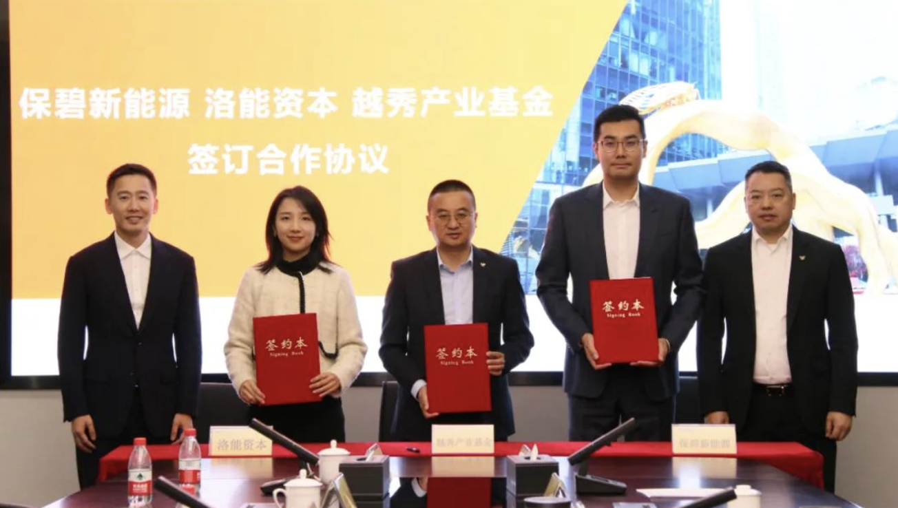 图为保碧新能源与越秀产业基金、洛能资本三方签约仪式现场