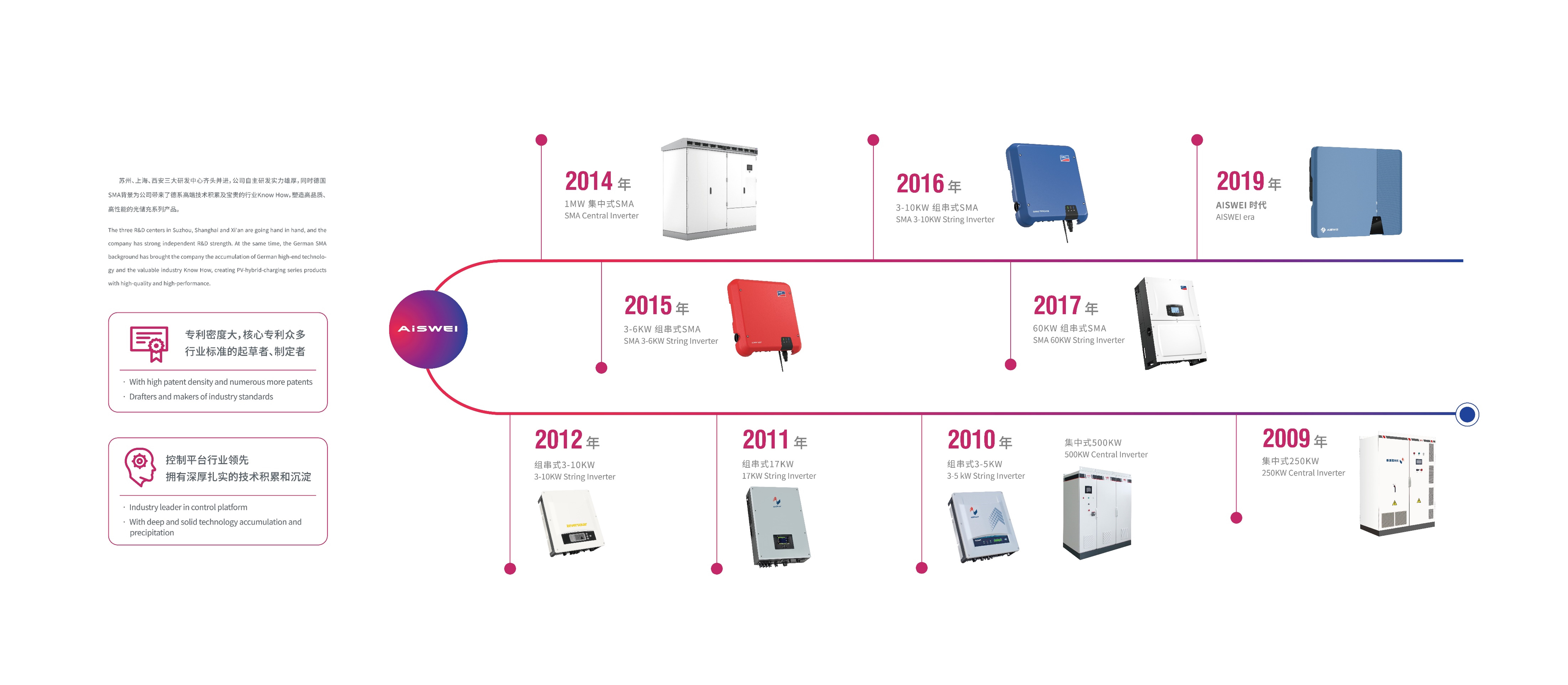追本溯源,深究三相光伏逆变器ASW HT系列250-330kW隆重推出的幕后,是爱士惟积累了多年的丰富行业经验。早在2009年,公司就曾成功推出集中式250kW(250kW Central Inverter)。次年公司乘胜追击,将集中式500kW(500kW Central Inverter)带至市场。数年后,公司于2014年再迎突破,革命性的1MW 集中式SMA(SMA Central Inverter)应运而生。一路走来、不断加码的集中式产品研发积累与沉淀,无疑也为新产品的推出打下了坚实的根基。