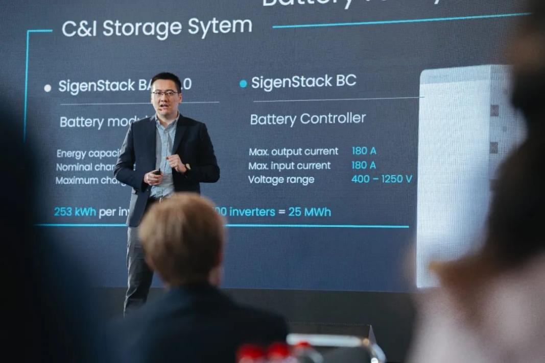 活动现场,思格对外发布了其全新的工商业光储解决方案。包括工商业逆变器,以及工商业储能系统,可广泛应用于工业园区、商业中心、数据中心等场景。思格销售与解决方案总经理张嘉伟从技术原理、性能优势到应用场景,全方位向现场嘉宾介绍了思格创新光储解决方案。