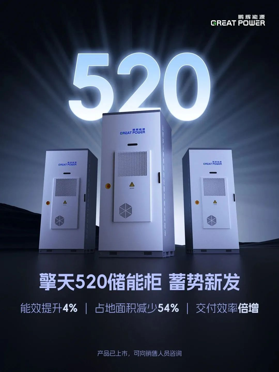 2月14日,春节开工后,鹏辉能源首发2025年重磅储能柜新品“擎天520”。据产品海报信息,擎天520储能柜能效提升4%,占地面积减少54%,通过研发与制造整体架构创新,生产交付效率倍增。