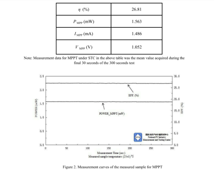 钙钛矿太阳能电池效率认证报告