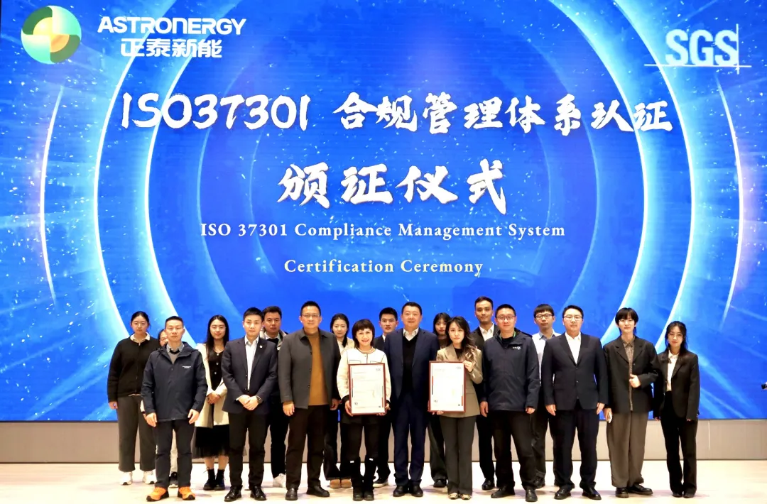 该证书作为正泰新能合规工作的重要里程碑,标志着公司的合规管理水平已经达到国际标准要求,将进一步助力公司在全球光伏市场赢得更多信任与支持,持续引领行业发展。