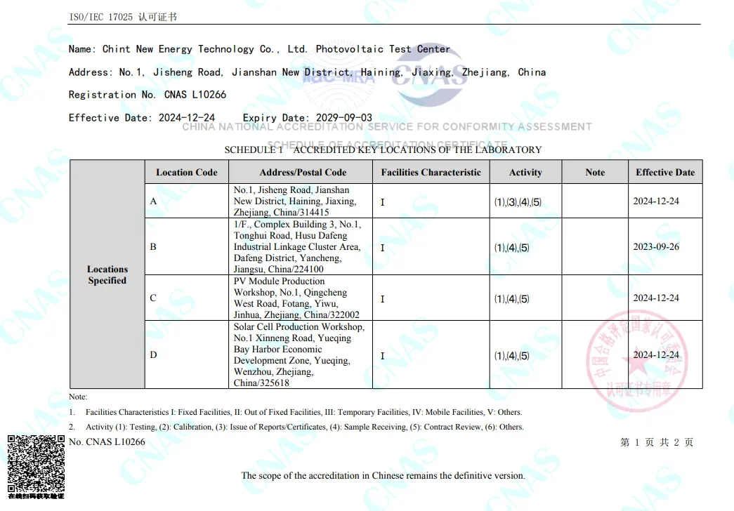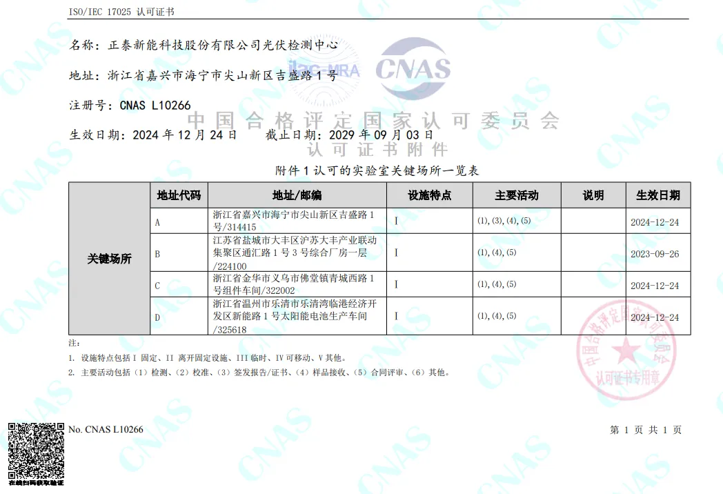 此次获得CNAS认可,不仅提升了公司的技术研发能力,也将增强公司的市场竞争力。正泰新能将以此为契机,持续提升技术检测能力,为公司的高质量发展保驾护航。