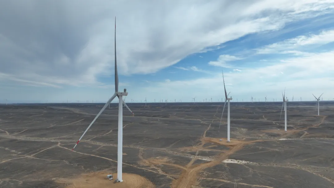 在达坂城,龙源电力新疆公司达坂城二场“以大代小”增容技改风电项目实现了中国风电的“新老接棒”,33台金风6MW级机组替换了155台老旧机组,将全场年发电量增加至8.56亿千瓦时;在塔城,中广核新疆玛依塔斯风电场的金风机组,已在暴风雪的洗礼中稳定运行13年,为该风电场赢得6次中电联5A风电场称号;在若羌,全国首个7.XMW大基地风电项目——中广核新疆巴州若羌100万千瓦风电场(二标段)安装67台金风科技7.5MW机组,全场到货仅用时70天,吊装完成用时74天,彰显“中国速度”;在吐鲁番,中电建托克逊风电项目坐落于全国陆上最大极限风速区域,32台金风科技8MW机组在40米/秒的狂风中挺立,将曾经令人谈之色变的“风灾”,转化为造福社会的绿色电力。