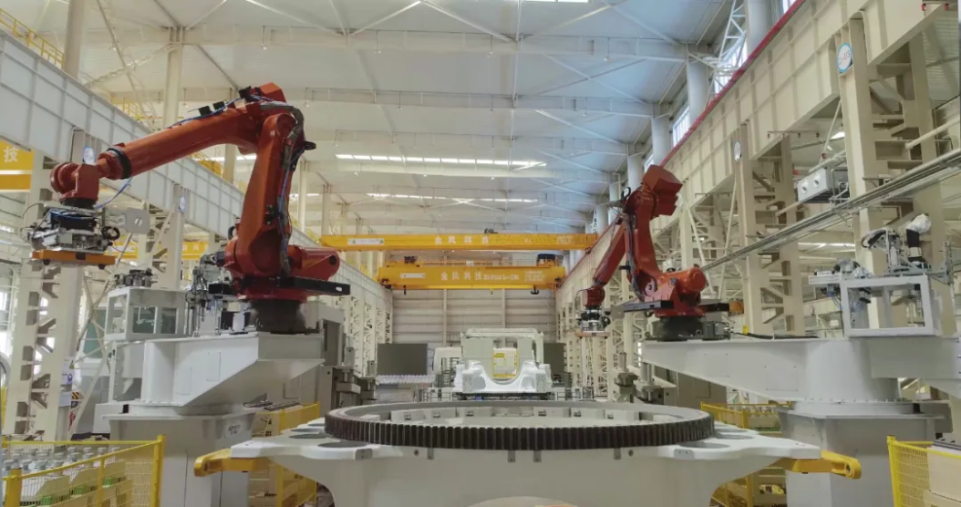 在产业基地建设过程中,金风科技还为新疆推动工业减碳提供“金风经验”。达坂城风电装备产业基地是新疆首个零碳智慧园区,园区配置2MW风电、403kW光伏以及磷酸铁锂储能装置,可实现厂房95%的绿电自供。依靠金风科技智慧能源平台,以及光学辅助硬件等设施,园区每年可减少1800吨标煤使用量。厂区实现5G信号全覆盖,通过脉动式自动化产线、无人生产等手段,实现生产周期缩短30%。达坂城基地不仅树立了绿色化、智能化生产的标杆,也为风电产业链发挥新质生产力提供范本。