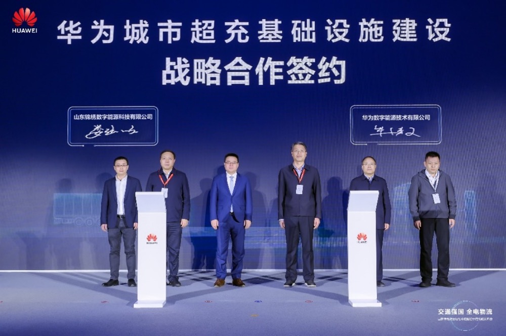 发布会现场签约华为物流超充基础设施建设、华为山东物流大数据应用中心建设、华为城市超充基础设施建设等多项战略合作。本次活动邀请行业专家及企业伙伴广泛参与,共同探讨推进物流电动化、数字化、降本增效、绿电交通的新思路、新技术、新措施。通过优化线路规划布局、提升运输承载效率、加大清洁能源占比等有效手段,推动新能源商用车等优势产业集群促进高质量充电基础设施网络协同升级,让交通运输领域能源转型支撑减碳成效向好达成。