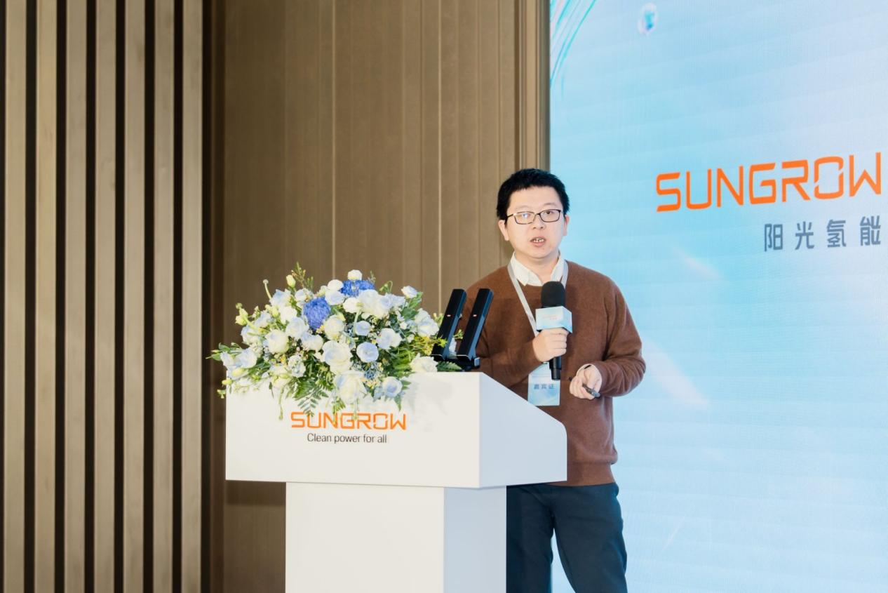 会上,阳光氢能“数智化”大型电解槽重磅发布,并直播了电解槽运行实况及实时数据。阳光氢能产品中心副总经理魏广科从智能化、性能与安全、大型化等方面,详细解读了新款数智化电解槽的创新优势。