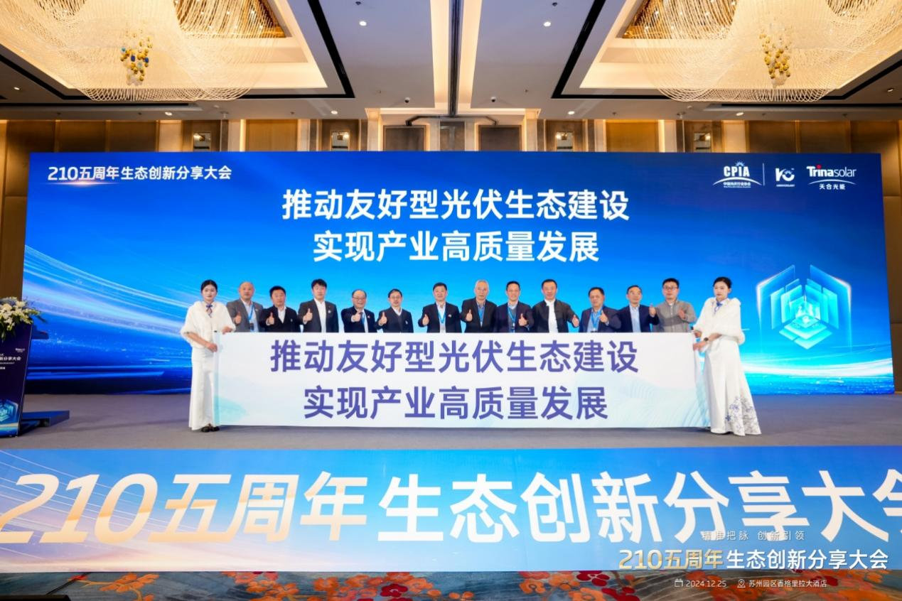 12月25日,由中国光伏行业协会指导,天合光能主办的“精准把脉,创新引领,210五周年生态创新分享大会”圆满举办。中国光伏行业协会名誉理事长王勃华、长三角太阳能光伏技术创新中心主任沈辉教授、天合光能副董事长、联席总裁高纪庆发表致辞。210产业生态企业及机构代表齐聚苏州,共同回顾行业为210产业生态的奋斗过程,探讨光伏行业协同创新模式。与会企业还发出产业高质量发展倡议,推动友好型光伏生态,实现产业高质量发展。