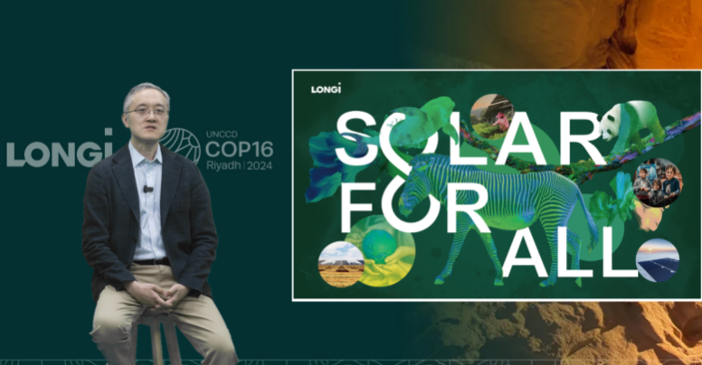 隆基一直致力于提高光伏电池转换效率,通过先进技术产业化降低光伏发电度电成本(LCOE)。张海濛表示:“‘Solar for All’的理念适用于各种可能的场景,使光伏成为人人可负担的清洁能源。从沙漠治理到矿区修复,从困难地区供水到未来城市规划中的能源供应,旨在推动各行各业的能源公平、绿色和低碳转型。”
