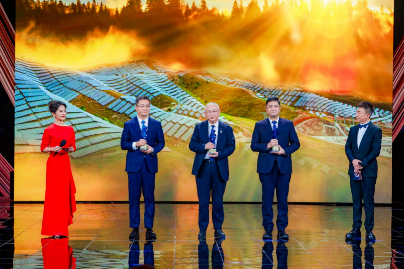 隆基绿能创始人、总裁李振国(中)代表公司领奖并发言
