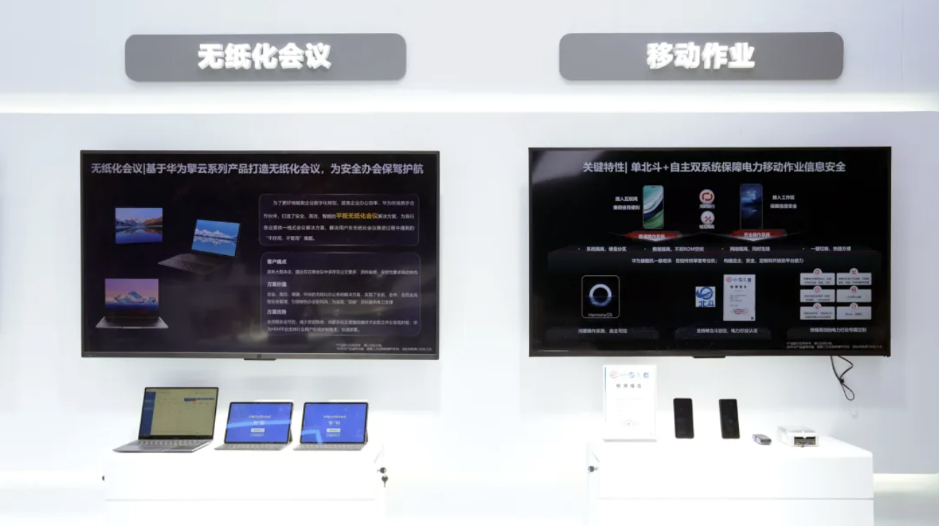 正是基于迫切的现实需求,华为擎云携多款商用终端产品及智慧能源解决方案,在电力展上频频受到诸多专业观众及上下游企业的高度关注。凭借全栈自主领先技术,华为擎云紧抓电力行业对效率和安全的高需求、严要求,围绕移动作业、安全终端、无纸化会议、职业健康管理等场景提供了系列解决方案,强有力地助推电力行业生产提质增效进入数字化新时代。