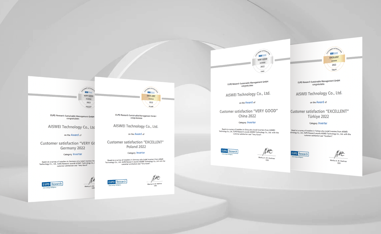 2023年6月,在德国慕尼黑的Intersolar Europe国际太阳能展上,全球知名研究机构EUPD Research授予爱士惟在中国、德国、波兰和土耳其地区“客户满意度奖”。爱士惟专业的服务能力、高度的敬业精神获得了广大渠道合作伙伴以及终端用户的高度认可。