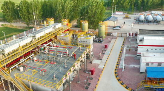 图为近日在胜利油田高89处理站,工作人员将二氧化碳驱区块采出的油气进行分离处理。