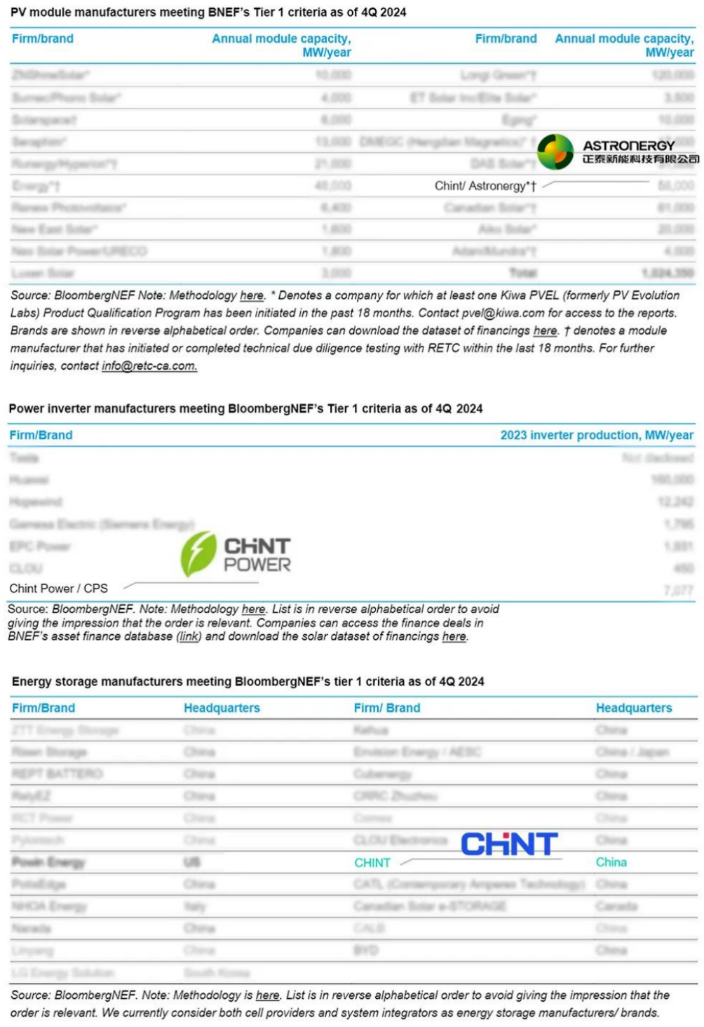 BNEF全球Tier 1榜单