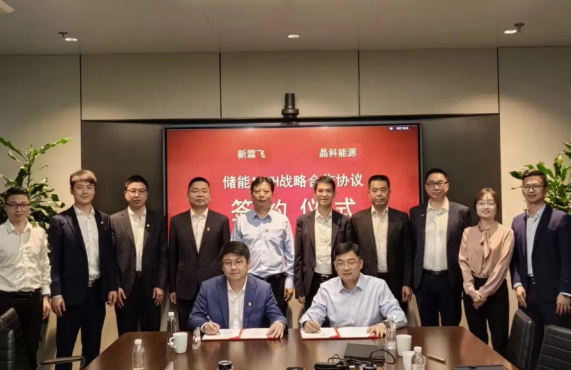 近日,晶科能源与江苏新霖飞能源科技有限公司正式签署1GWh大型储能订单。该订单将覆盖江苏省范围内的多个储能项目,利用具备高能量密度、高安全性、简便安装和智能运维等特点的全新一代大型液冷储能系统蓝鲸,优化提升供电质量,为江苏地区提供稳定、可靠、高效、安全的电力支持,进一步推动当地清洁能源的发展。