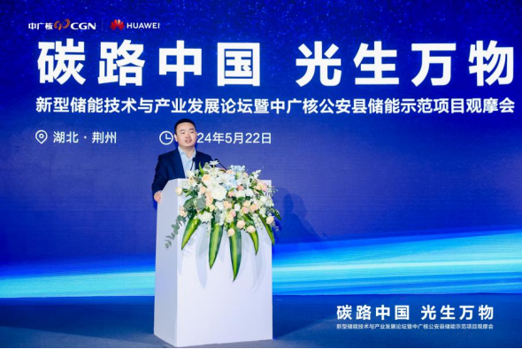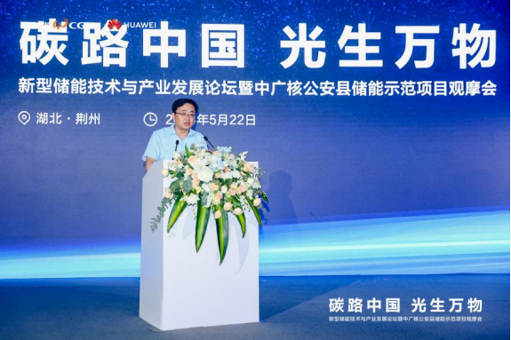 5月22日,新型储能技术与产业发展论坛暨中广核公安县储能示范项目观摩会在湖北荆州举行。本次活动以“碳路中国 光生万物”为主题,由中广核新能源湖北有限公司、华为数字能源共同举办。业界专家、学者、企业代表、产业媒体等齐聚一堂,共同探讨新型储能技术的发展趋势、市场机遇及挑战。