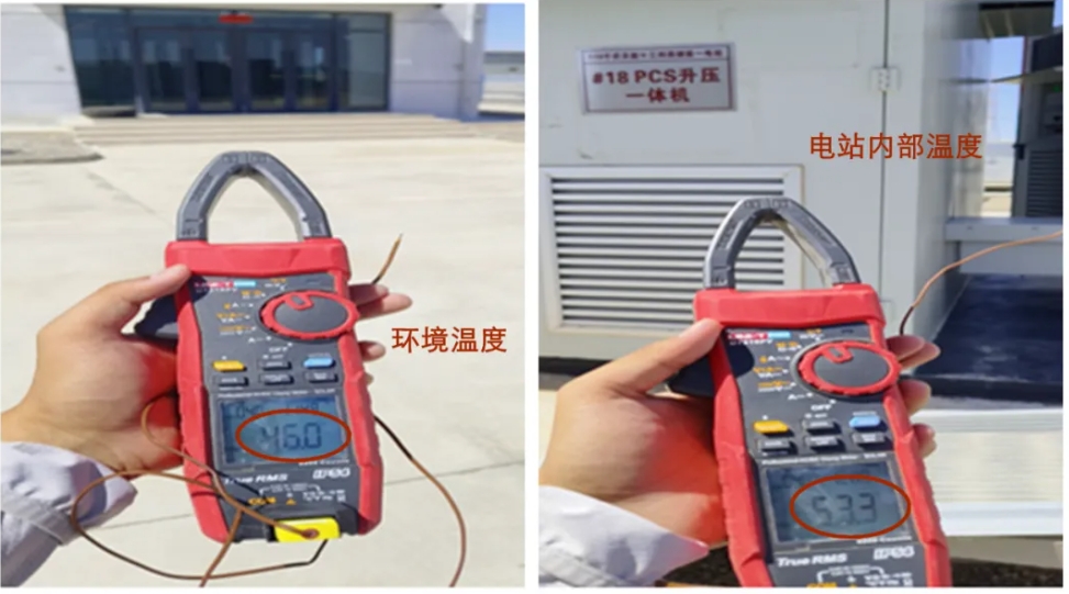 据可靠数据测试,在环境温度为43℃的100MW/200MWh大型电站区,使用常规散热设计方案,生活区环境温度为46℃,而电站内部环境温度高达53.3℃。