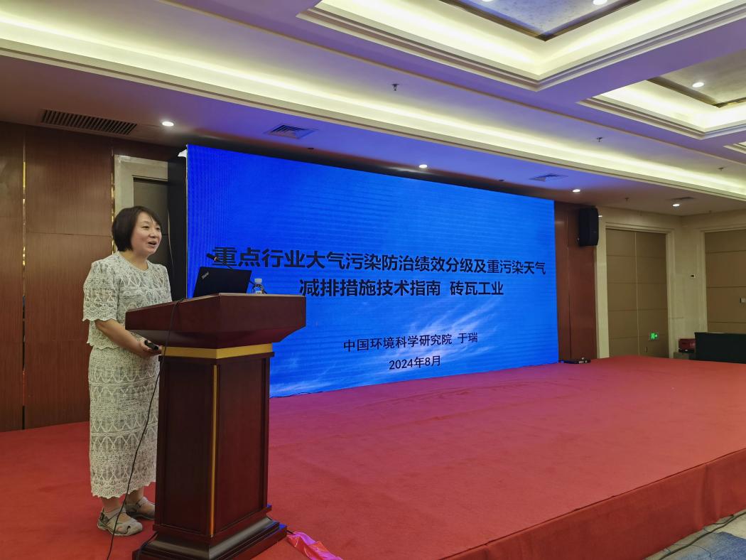 中国环境科学院工程师于瑞就重点行业大气污染防治绩效分级及重污染天气减排措施技术指南报告,并对《砖瓦工业绩效分级指标标准》的编制背景和意义进行了详细解读。她指出,环保绩效分级创A达B是砖瓦行业绿色发展的必由之路,各企业要充分发挥标杆作用,推动行业整体环保水平提升。