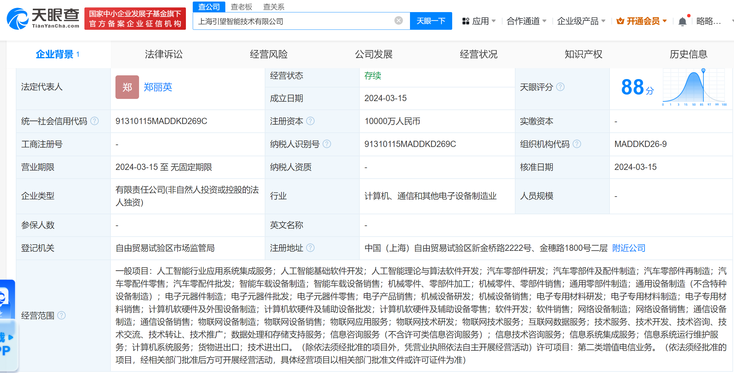 天眼查显示,3月15日,上海引望智能技术有限公司成立,法定代表人为郑丽英,注册资本1亿人民币,经营范围含人工智能行业应用系统集成服务、人工智能理论与算法软件开发、汽车零部件研发、智能车载设备制造等。股权全景穿透图显示,该公司由深圳引望智能技术有限公司全资持股,后者为华为技术有限公司全资子公司。据悉,深圳引望智能技术公司是华为车BU于今年1月成立的新公司。值得一提的是,3月14日,深圳引望已成立苏州引望智能技术有限公司、南京引望智行技术有限公司、东莞引望智能技术有限公司3家公司。
