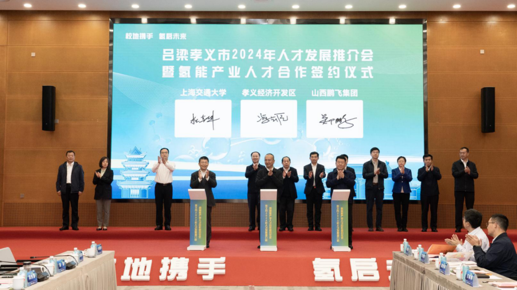 4月23日,山西省孝义市2024年人才发展推介会暨氢能产业人才合作签约仪式在上海交通大学闵行校区落幕。会上,上海交通大学、孝义经开区、山西鹏飞集团签署共建“燃料电池商用车技术联合研究中心”合作协议,山西鹏飞集团与15位入驻企业博士签约。