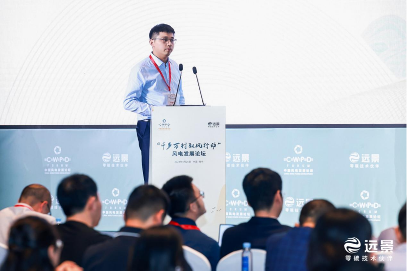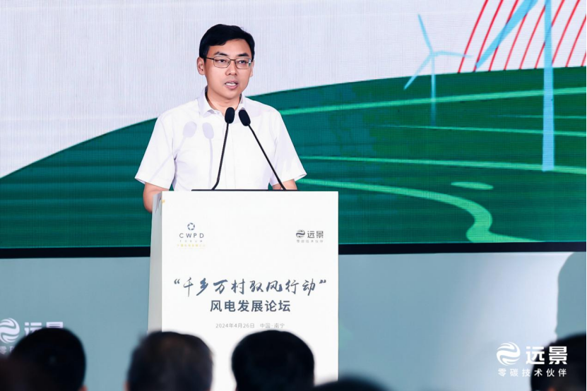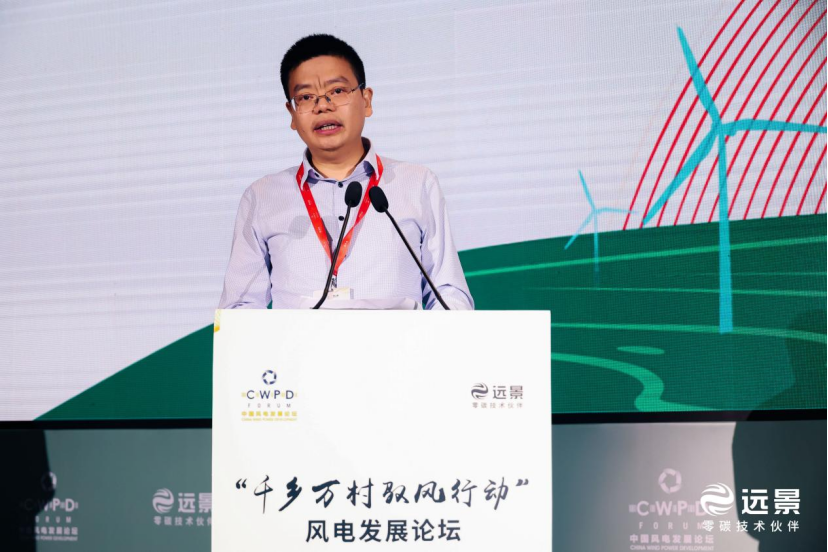 针对“千乡万村”风电开发新场景下的机遇和挑战,远景在闭门会、专业论坛和展台中呈现了紧密契合乡村风电开发需求的高可靠智能风机技术、商业模式创新实践和典型项目案例等。在主旨演讲环节,远景能源分散式产品线负责人冯超带来以《“稳”“静”驭风——远景的乡村风电解决之道》为题的专题报告。