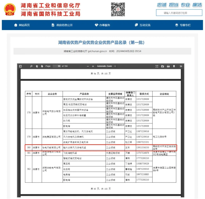 日前,湖南省工业和信息化厅发布了《湖南省优势产业优势企业优势产品名录(第一批)》,彰显了湖南在产业优化升级方面的成果。湖南兴蓝风电有限公司(原“哈电风能有限公司”,以下简称“兴蓝风电”)的超大功率风力发电机组作为风电行业翘楚成功入选。本次入选是对兴蓝风电在风电领域的技术研发创新能力、竞争优势和制造实力的又一次充分肯定和证明。