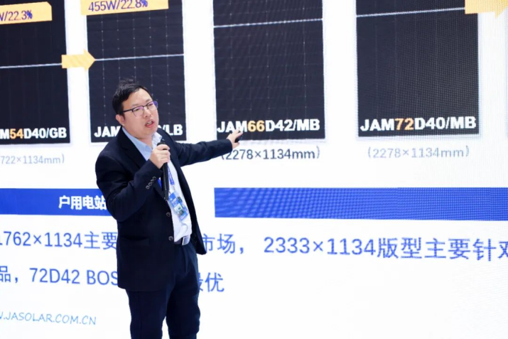 为帮助参展观众深入了解晶澳科技产品,晶澳科技专家在展会现场围绕最新光伏组件产品、五大户用创新方案产品、储能设备及光储一体化解决方案产品、零碳综合解决方案产品和工商业一体化解决方案产品等方面分享了技术报告。