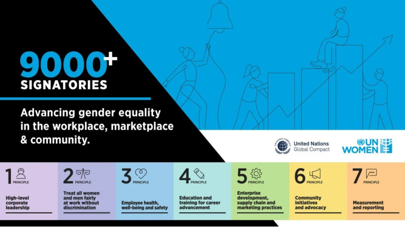 联合国《2030年可持续发展议程》明确提出,到2030年实现性别平等,增强所有妇女和女童的权能。作为全球性倡议,《赋权予妇女原则》(WEPs)由联合国妇女署和联合国全球契约组织共同发起,其中包括“建立高层次的企业领导机制来促进性别平等”“尊重并支持人权和无歧视原则,平等对待所有男女员工”“保障所有男女员工的健康、安全和福祗”“加强对女性员工的教育、培训,促进其职业发展”“推广有利于提高女性能力和权利的企业发展计划、供应链及市场营销方式”“通过社区行动和宣传促进性别平等”“评估和公开报告企业推动性别平等的进展情况”七大原则。该原则于2010年3月正式发布,根据官网信息,全球已有9000多家企业签署承诺。