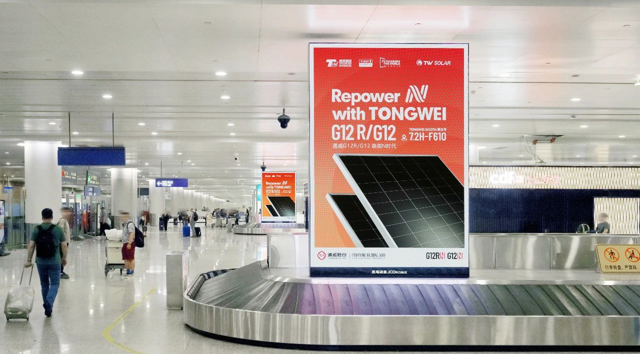 当前,全球“双碳”进程深入推进,以光伏为代表的可再生能源高质量发展新篇章正在不断绘就。上海是我国与国际交流的重要门户,是华东地区第一交通枢纽。第十七届SNEC展会前夕,近500块通威光伏新能源产业链品牌形象广告,特别是以“通威G12R/G12 焕能N时代”为主题的高效组件品牌形象广告,闪耀上海各大交通枢纽及高客流量区域,面向过亿人次展示品牌形象,实现持续性品牌曝光。