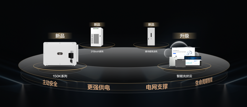 此次重点推出了150K更大功率工商业逆变器、行业首款风液智冷工商业储能、360kW/480kW液冷超充主机、全新升级的智能光伏云等。