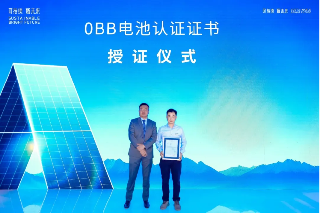 发布会现场,德国莱茵TÜV大中华区太阳能与商业产品服务光伏组件副总经理冯轶洲为晶澳科技颁发了“0BB电池认证证书”;TÜV南德新能源可靠性与标准化研究院院长张祝林为晶澳科技颁发了“0BB n型组件TÜV新标证书”,有力证明了这一解决方案的实力。