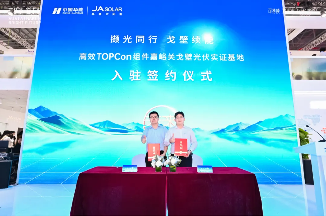 在此背景下,本次展会晶澳科技再与中国华能集团清洁能源技术研究院有限公司签约,宣布旗下高效TOPCon产品入驻华能嘉峪关戈壁光伏实证基地。这意味着晶澳科技高效组件产品将再次接受极限挑战,在高温、强风和沙尘的严苛环境下,以科学的方式让市场直观认识到晶澳科技“为客户价值而生”的产品设计理念。