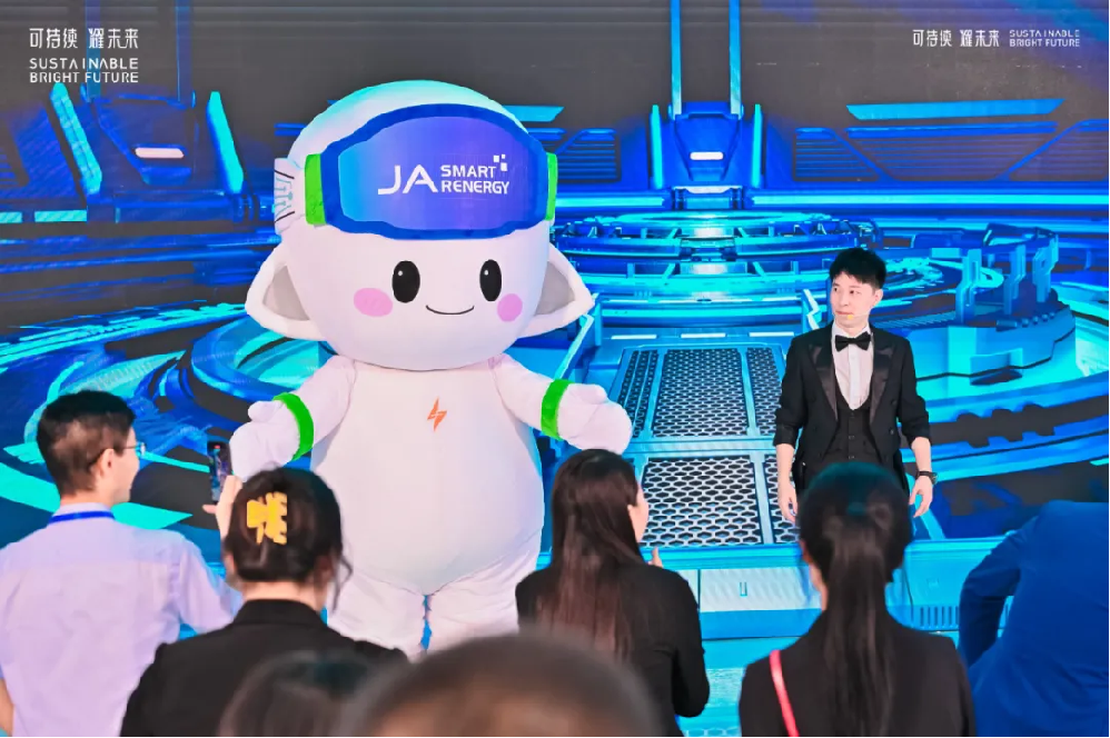 此外,在本次展会上,晶澳科技“一体两翼”战略的重要组成部分——晶澳智慧能源还焕新发布了“晶澳小晶灵”品牌形象。该形象基于晶澳智慧能源“多种能源协调互补、多种环节整合共治、多种场景融合发展” 的理念进行设计,旨在直观传达晶澳企业文化和精神,给予用户更多好感与亲和感,进一步增强了晶澳的市场影响力。
