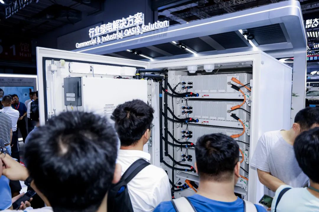 华为推出了全球首款从芯到网的智能组串式构网型储能平台,吸引众多专业客户驻足。该平台包含智能组串式构网型储能系统、智能组串式储能控制器、智能箱变、智能子阵控制器、智能电站控制器、智能能量管理系统;兼容业界不同规格的大容量磷酸铁锂电芯,容量灵活多变,且支持全倍率场景应用,实现生命周期内更优度电成本。