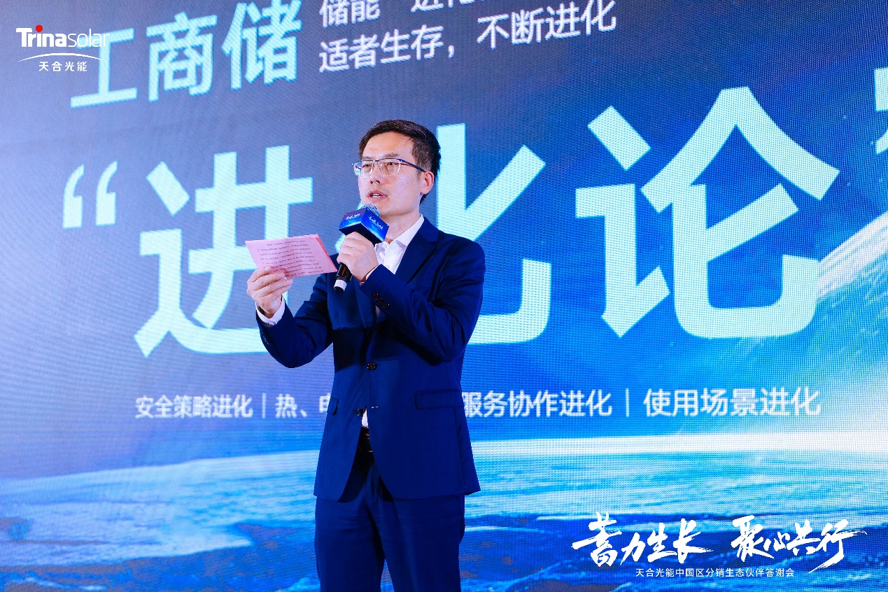 SNEC期间,天合储能副总裁冯玟生受邀出席新品发布现场,携手数百家产业上下游生态合作伙伴,推进技术互补资源融享,助力能源事业共赴美好未来。期间冯玟生发表《工商储进化论》的演讲,他表示,天合新一代工商储系统全面升级硬件配置,产品应用参数全方位进化,实现更大储能容量、更高吞吐效率、更长循环周期以及更小的占地面积的产品优势,多维度实现跨越式的产品升级,对于推动产业链生态共建有重要意义。