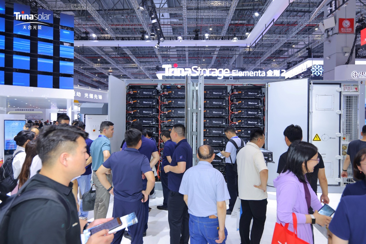 展会现场,天合5MWh新一代柔性液冷电池舱Elementa 金刚2引起现场众多客户热烈关注。