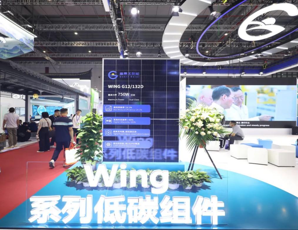高景太阳能在此次SNEC展会上发布的Flamingo-R系列组件及Wing系列组件新品引得无数参展者注目。据了解,Wing系列为低碳组件,该产品以“超低碳足迹、高功率、高效率”为特色,最高功率达到750W,效率提至24.1%,使用寿命可达30年。
