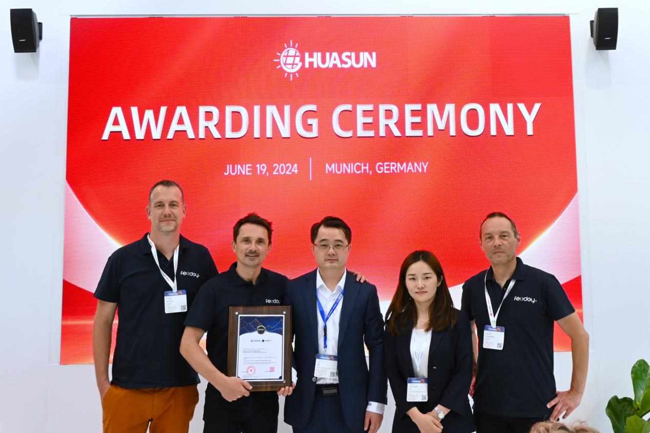 作为一家深耕国际新能源市场的企业,华晟新能源积极实施全球化布局,坚定不移地推进“出海战略”。近年来,华晟凭借卓越的品质和实力,不断扩大全球“朋友圈”,与全球合作伙伴建立了广泛的合作网络。在本届Intersolar Europe 2024展会上,华晟向法国的Feedgy、意大利的Enerpoint s.r.l.和Lux s.r.l.及OGT Solar、捷克的Akusolar和Solidsun等杰出分销商颁发了“优秀分销商”荣誉,彰显了公司在全球市场的认可与影响力。