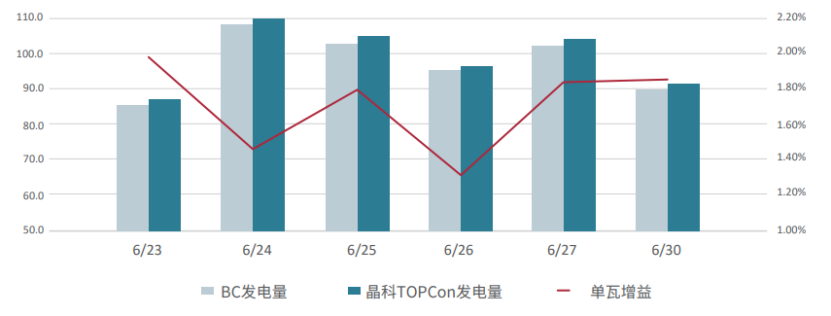 在测试周期内,晶科能源TOPCon组件展现出了卓越的发电能力。6-7月的总平均发电量高出其他厂家BC组件1.71%,这一优势在整个测试周期内都得到了保持。这一结果充分证明了晶科能源TOPCon组件在高效发电方面的显著优势。