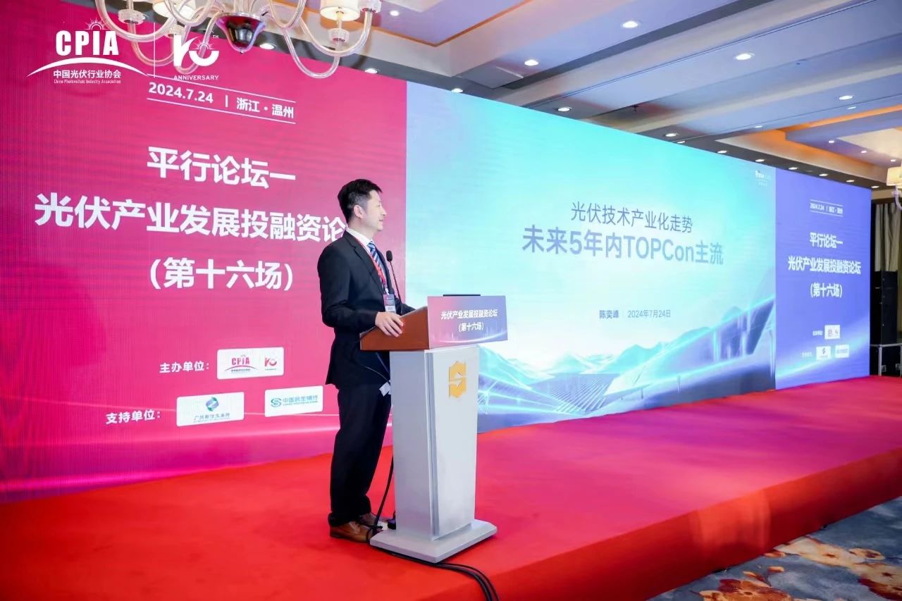 7月24日,中国光伏行业年中会平行论坛“光伏产业发展投融资论坛”召开,天合光能副总裁、光伏科学与技术全国重点实验室副主任陈奕峰博士受邀参加,并发表《光伏技术产业化走势》的主题演讲。TOPCon成为继PERC之后的主流技术,放眼未来5年,TOPCon技术最领先、产业化成熟度最高、设备单吉瓦投资最低,更具性价比,且在未来5年,还有巨大的提效空间;此外TOPCon产能充沛,无疑是主流技术。而5年后,TOPCon更适合作为叠层电池的底电池,TOPCon+钙钛矿叠层电池技术将持续迸发强劲的生命力。第三方权威报告显示,TOPCon已经成为未来5年主流技术的明确趋势,且成为市场龙头企业的明确选择。