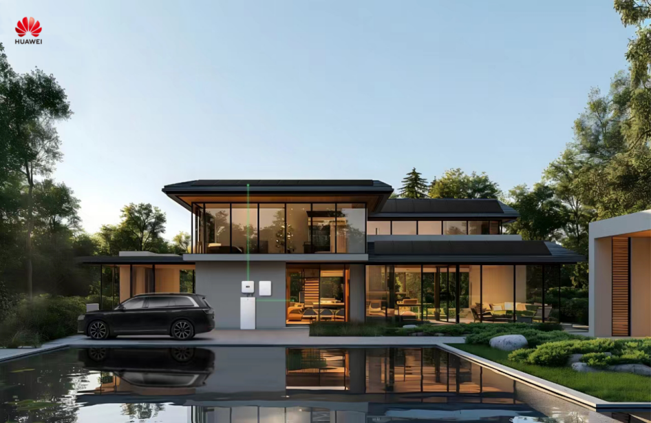 屋下,智能能源控制器、智能组串式储能、全屋备电盒等产品延续华为一贯的简约、时尚设计——优雅纯净臻雪白,澎湃动力成就能量之源,完美契合别墅风格,简约时尚,艺术感倍增,彰显业主非凡品味。