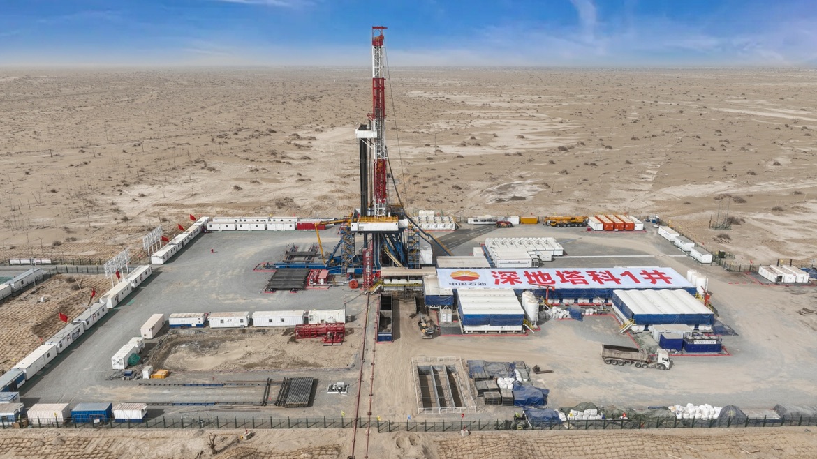 中国石油塔里木油田深地塔科1井加快向万米挺进 王祎/摄