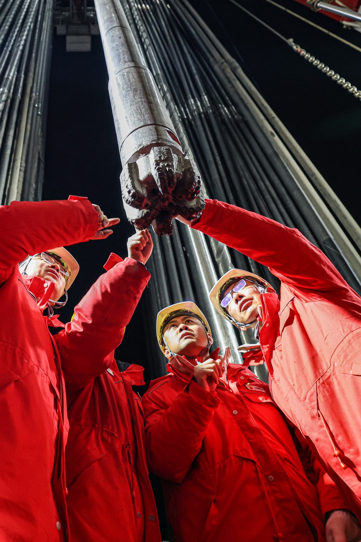 中国石油人正查看从近万米深地取出的钻头 金添/摄