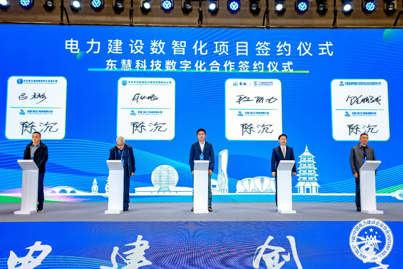 在签约仪式环节,中国电建集团华东勘测院、北京构力科技有限公司、新中大公司科技股份有限公司等企业与相关单位签订了数智化项目合作协议,共同推动电力建设行业的数智化进程。