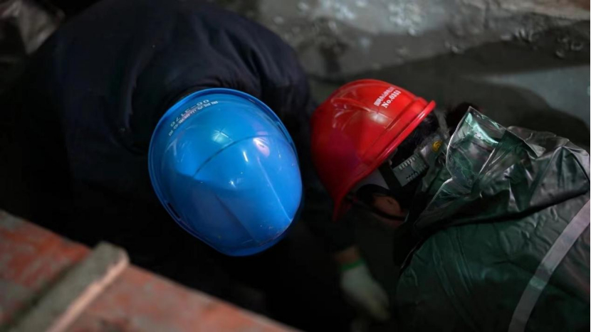 从当天早上8点开始,他们已经在井内连续工作了10余个小时。“这次是停电作业,要赶在过年前检修完成,工期很紧,昨天我们就忙到了夜里3点多。”钟师傅说。