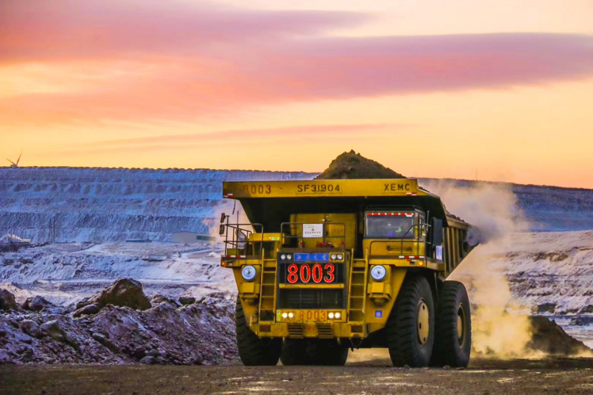 “大黄蜂”自卸车如同钢铁巨兽,行驶在冬日的生产现场,在冰雪封闭的世界中,展示着强大的力量,土岩被剥离展露出地下深处的“乌金”。