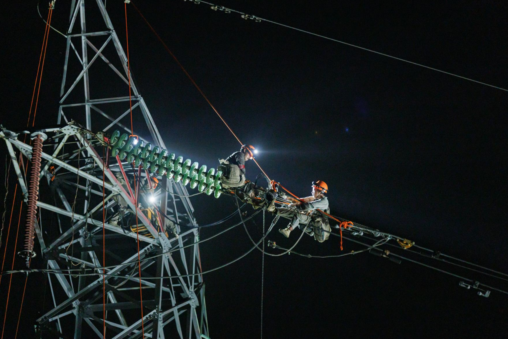 ▲图为6月20日零时,国网温州供电公司对220千伏柱东线开展耐张压接管更换作业。为最大程度减小线路停电对供区居民、企业带来的影响,该公司利用夜间用电低谷期,通过采用负荷转嫁和集中“零点”检修的方式,为民提供“无感知”用电服务。张健/摄