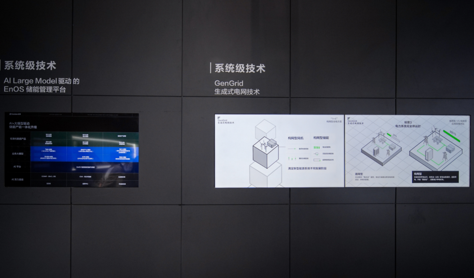 远景储能推动AI与构网技术融合,自研GenGrid生成式电网技术,“1+4”全栈构网,通过对源侧、网侧、用户侧数据的感知和识别,结合历史数据大模型,可实现自主调校惯量、阻抗、频率、电压等参数,灵活适应孤网、弱网、新能源大基地等各种场景,支持100%新能源电力系统。