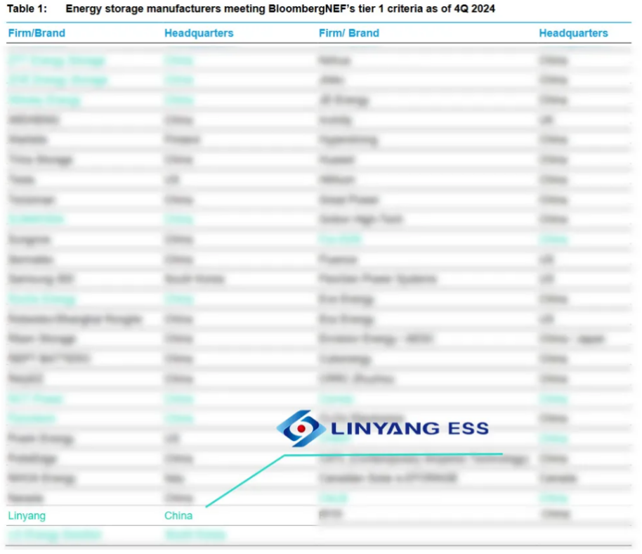 林洋储能获评彭博BNEF Tier 1 全球一级储能厂商