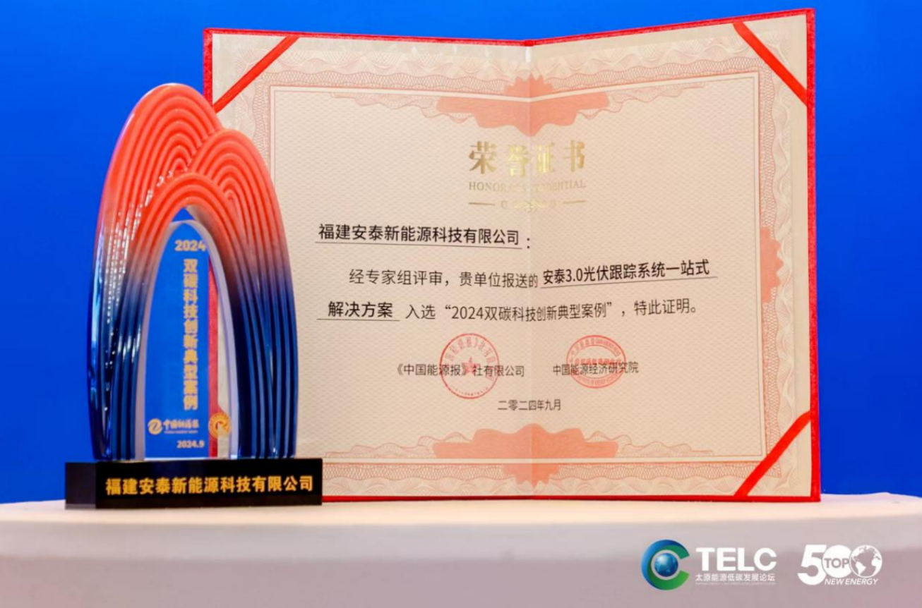 安泰新能源凭借创新的《安泰3.0光伏跟踪系统一站式解决方案白皮书》,成功入选“2024双碳科技创新典型案例”,展示了安泰新能源在光伏跟踪技术研发和创新能力方面的强大实力,同时也凸显了公司在数智化光伏支架及系统解决方案领域的领先地位。